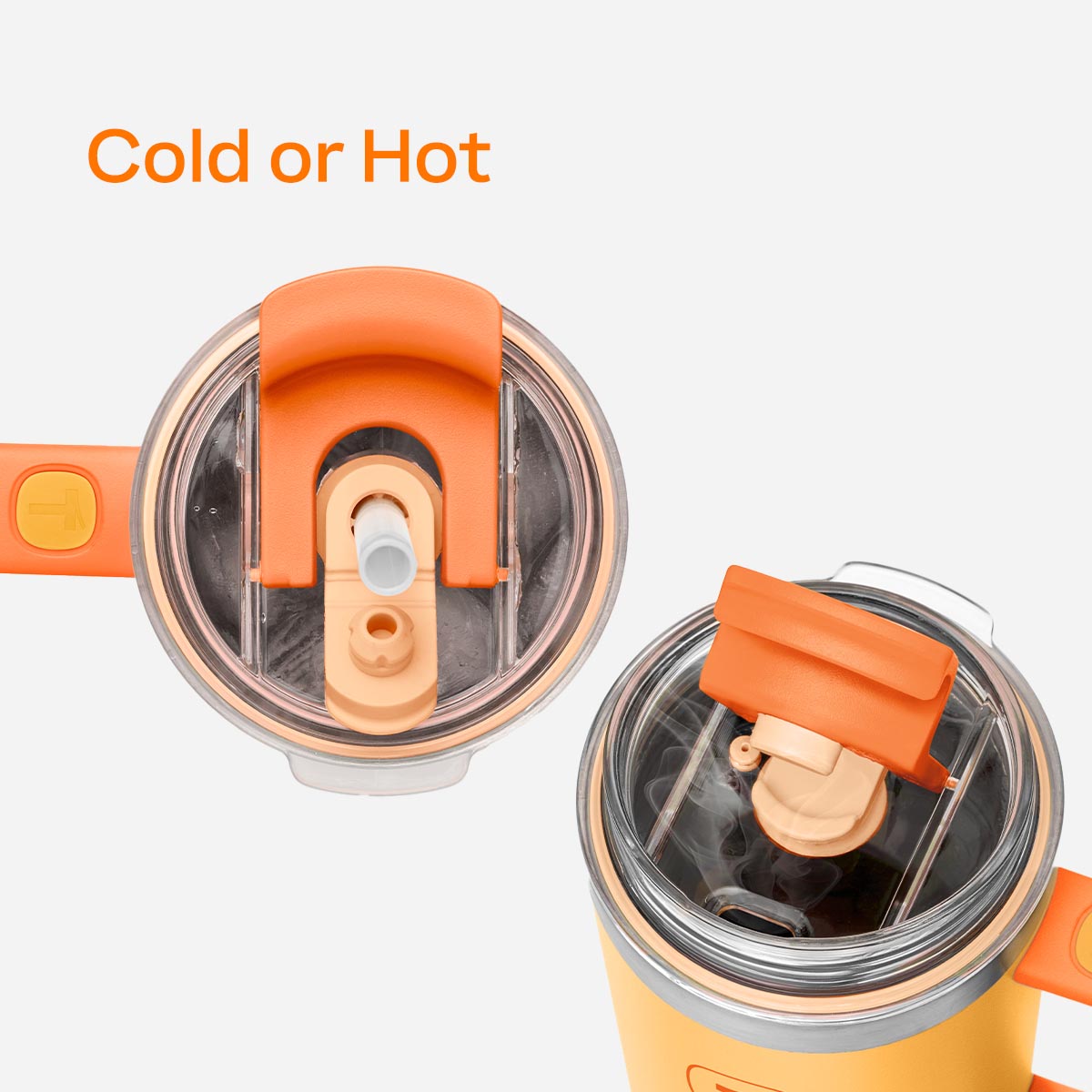- Straw in or spout open:?For cold drinks. pop the straw in the 2-in-1 lid. For hot beverages. flip the lid to sip from the spout.